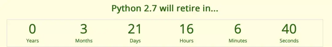 答:从 2019 年 9 月 10 日起算还有 3 个月 21 天。有一个倒计时,在 pythonclock.org (https://pythonclock.org/) 网站上。