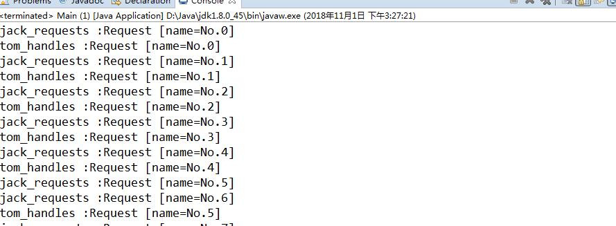 System.out.println(Thread.currentThread().getName()+"handles"+ request);