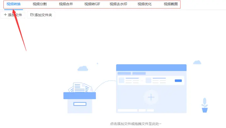 1、首先打开转换器,此时我们所看到的是软件的初始界面,而我们需要先把功能栏的功能调整为我们需要的视频转换功能。