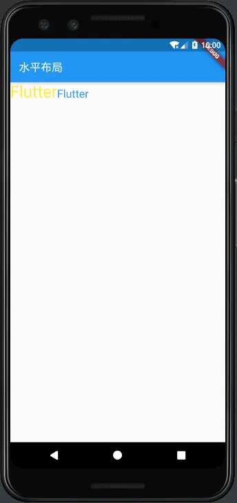 Row( crossAxisAlignment: CrossAxisAlignment.start, textBaseline: TextBaseline.alphabetic, children: [ Text( 'Flutter', style: TextStyle( color: Colors.yellow, fontSize: 30.0 ), ), Text( 'Flutter', style: TextStyle( color: Colors.blue, fontSize: 20.0 ), ), ], );