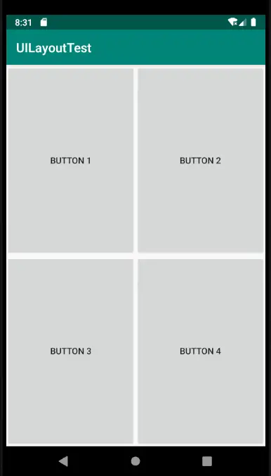 使用 app:layout_widthPercent 属性将各按钮的宽度指定为布局的50%,使用 app:layout_heightPercent 属性将各按钮的高度指定为布局的50%。这里之所以能使用app前缀是因为我们刚才定义了app的命名空间,这跟我们一直能使用android前缀是一样的道理。