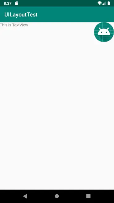 可以看到,文字和图片都是位于布局的左上角,因为ImageView是在TextView之后添加的,所以图片压在了文字上面。我们可以通过 android:layout_gravity 来指定控件在布局中的对齐方式