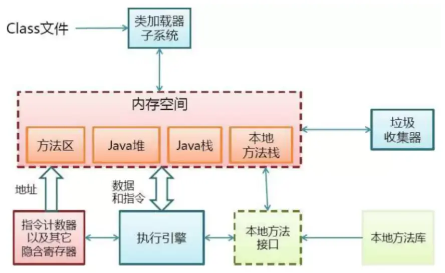 - 执行引擎(执行字节码,或者执行本地方法)