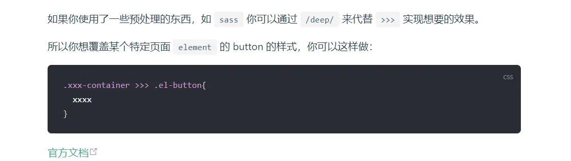 vue引用了第三方组件,需要在组件中局部修改第三方组件的样式,而又不想去除scoped属性造成组件之间的样式污染。此时只能通过 >>>, 穿透scoped。 或者不适用scoped,给外面起个独一无二的类名。让它只在相应的组建内样式有效。推荐使用FeHelper