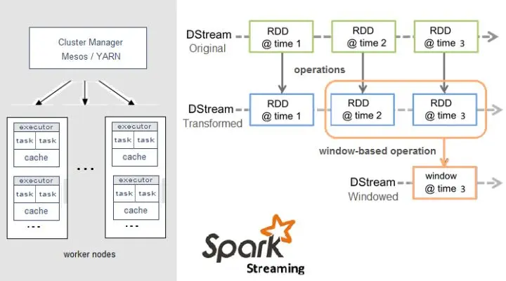 Spark Streaming,即核心Spark API的扩展,不像Storm那样一次处理一个数据流。相反,它在处理数据流之前,会按照时间间隔对数据流进行分段切分。Spark针对连续数据流的抽象,我们称为DStream(Discretized Stream)。 DStream是小批处理的RDD(弹性分布式数据集), RDD则是分布式数据集,可以通过任意函数和滑动数据窗口(窗口计算)进行转换,实现并行操作。