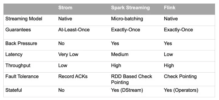 针对流数据+批数据的计算框架。把批数据看作流数据的一种特例,延迟性较低(毫秒级),且能够保证消息传输不丢失不重复。
