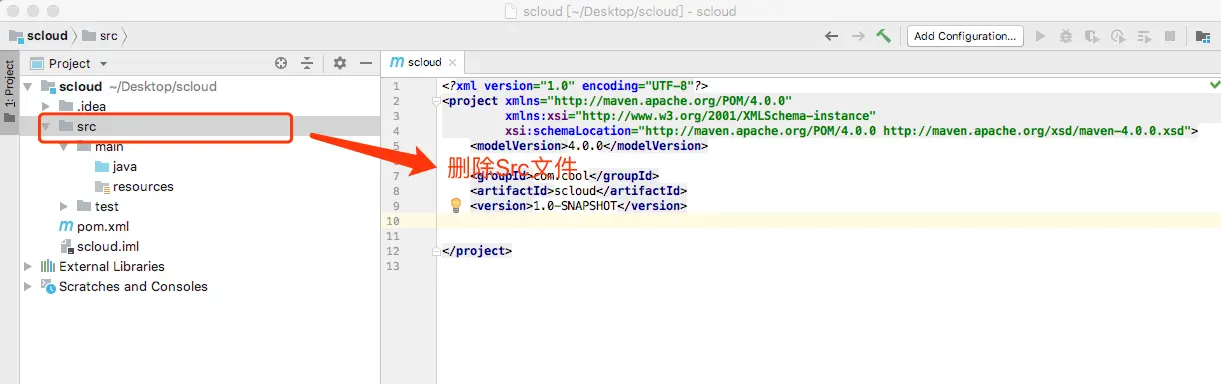 创建完目录结构,并删除src文件,pom.xml 文件暂时不用修改,进入第三节吧。
