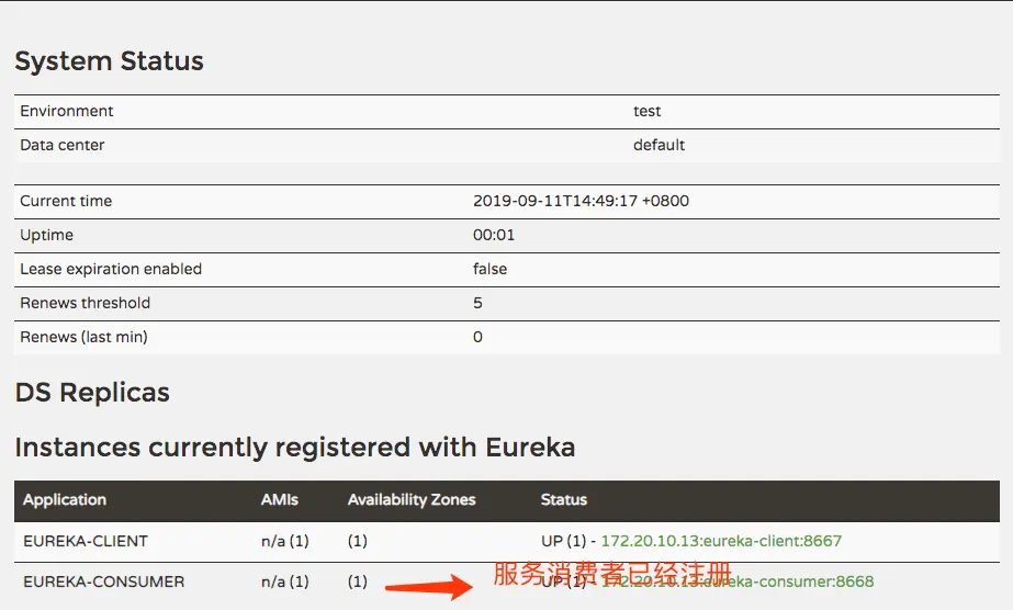 nice~,至此 SpringCloud Eureka服务发现与注册已经讲解完毕,下一章在服务消费者中集成Feign提供一个负载均衡的http客户端。