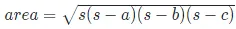 area = math.sqrt(s*(s-a)*(s-b)*(s-c))