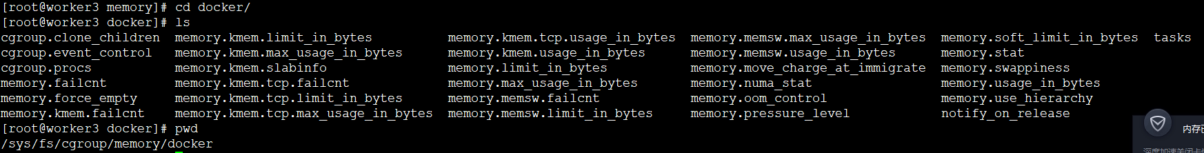- 因为Docker容器没有运行,/sys/fs/cgroup/memory/docker目录下面没有对应资源限制,如下所示: