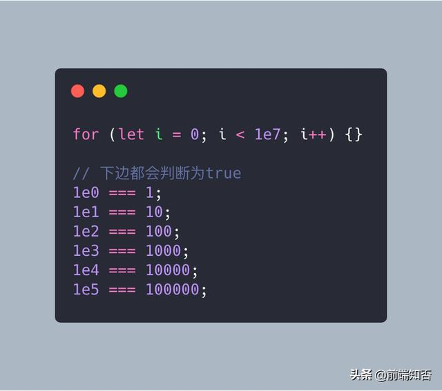 你可能已经看过这个了。它本质上是一种编写没有尾随零的数字的奇特方式。例如,1e7实质上意味着1后跟7个零。它表示一个十进制基数(JavaScript解释为浮点类型)等于10,000,000。