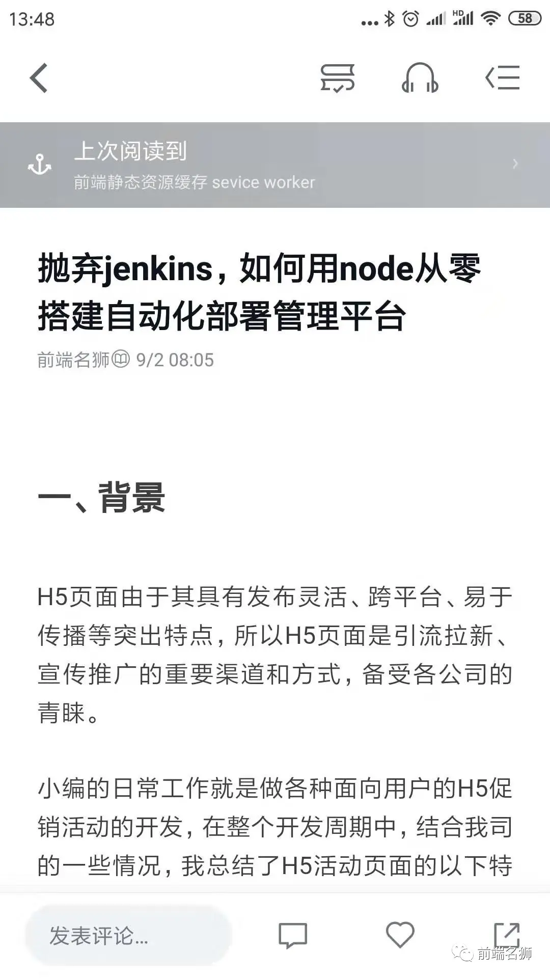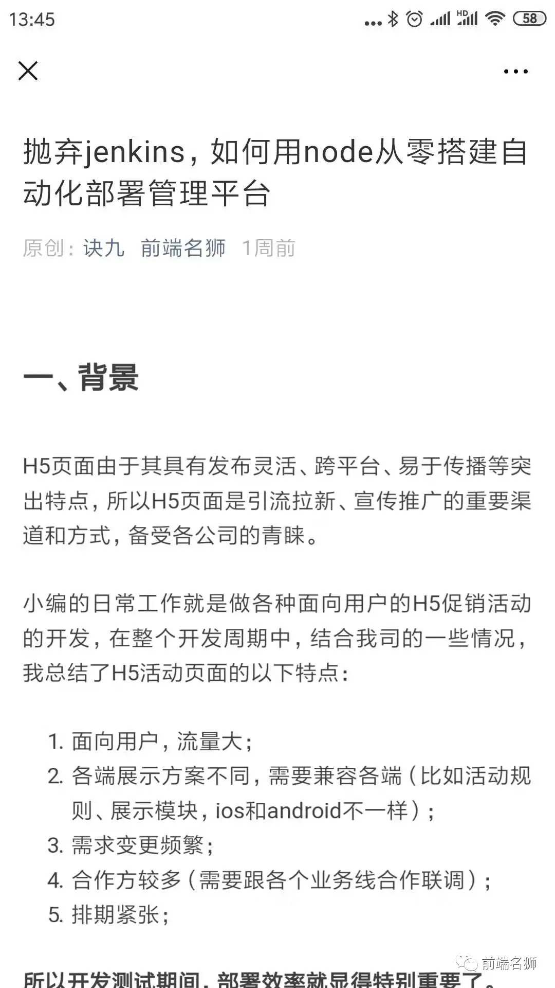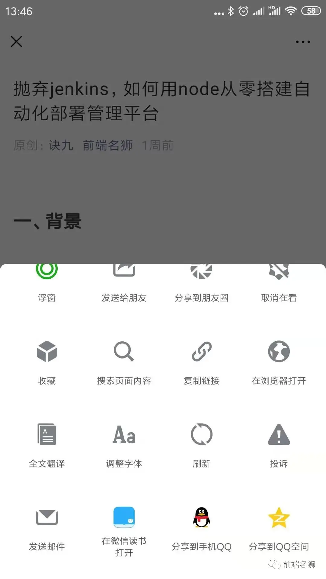 1. 随便打开一篇公众号【前端名狮】的文章,如下图: