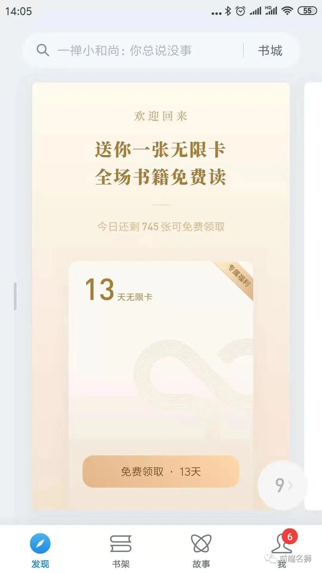 3. 点击图标后,会拉起微信读书APP,如下图所示: