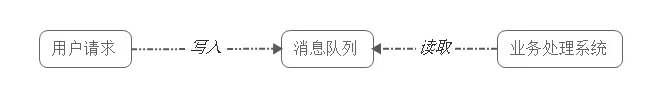 请求先入消息队列,而不是由业务处理系统直接处理,做了一次缓冲,极大地减少了业务处理系统的压力;