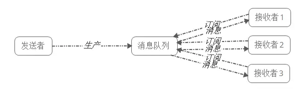 消息发送者生产消息发送到queue中,然后消息接收者从queue中取出并且消费消息。消息被消费以后,queue中不再有存储,所以消息接收者不可能消费到已经被消费的消息。