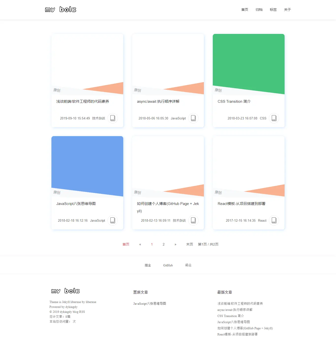 主题部分我是直接从Jekyll Themes主题库中选取的一个,由于时间没那么多,再加上是自己做着玩,所以偷个懒。在这里贴出原作者 Liberxue。