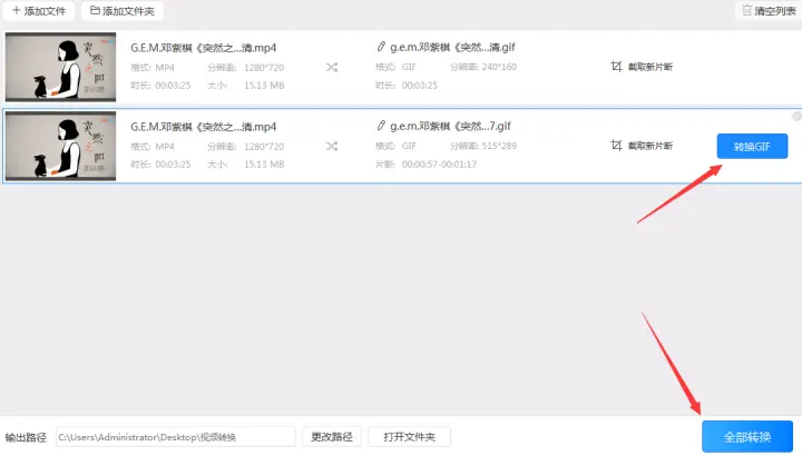 5、格式转换完成后点击覆盖在转换GIF按钮上的打开按钮或直接在之前预设的输出路径就可以找到转换后的gif动态图了。