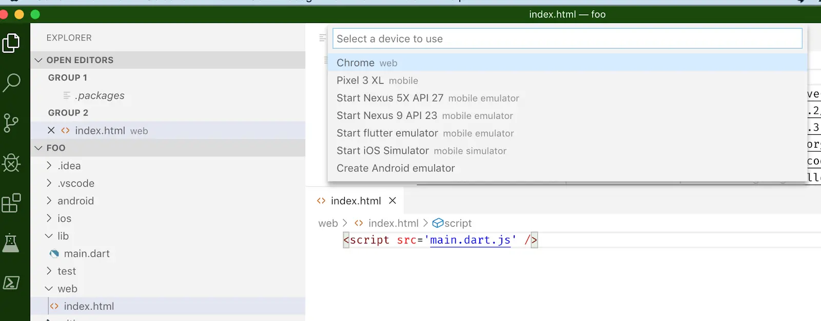 以上是VS Code的屏幕截图,其中为Flutter启用了Web支持。请注意web/ index.html文件以及下拉列表,可以选择Chrome作为目标开发设备。 使用Flutter支持Web输出仍处于早期阶段,但此版本代表了使用Flutter为Web开发提供生产支持的重要一步。