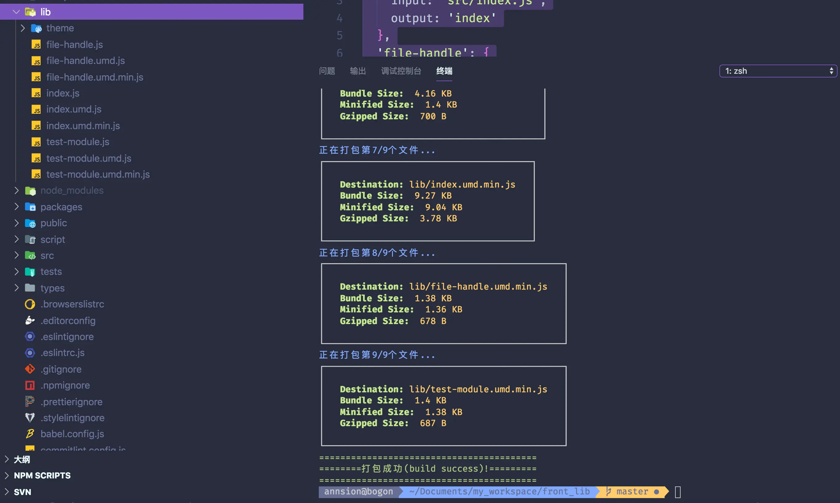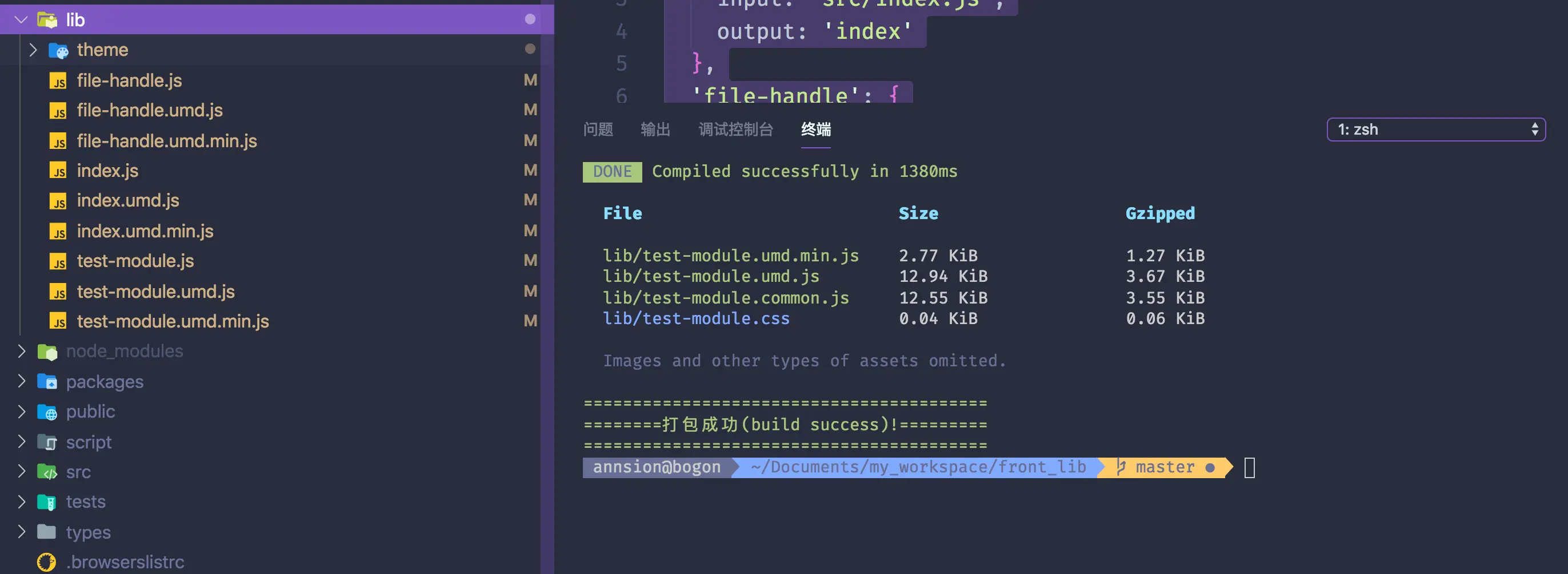 完成后会显示打包成功字样就可以了,同时会生成lib目录,就是你到包后的文件,