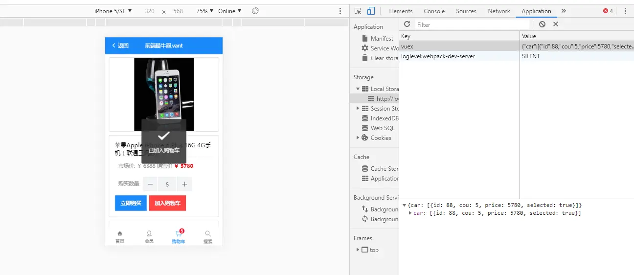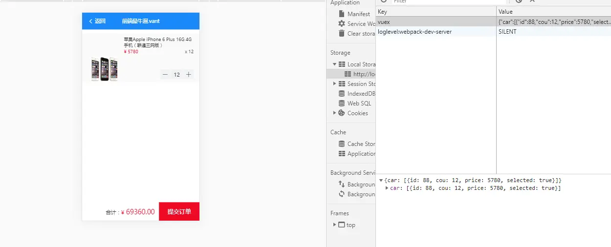 <!--只要引入了插件和引入下面这行代码,state里面的数据就会显示在默认localStorage里面,不过默认的key为vuex ,value 还是'{car[]}'这样。但是因为这三方插件的封装,我们在获取state 里面的数据就默认是本地存储的,但是想要本地存储的数据得到修改,修改的函数也必须写在同一vuex 文件中。