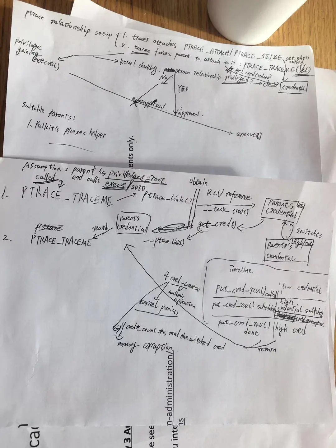 简单总结:即利用并发条件下,子进程在获取父进程的同时,父进程的凭证得以切换至root来使得子进程同时获得root权限。