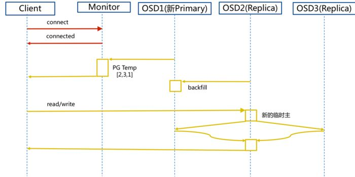 4. client IO读写直接连接临时主osd2进行读写。
