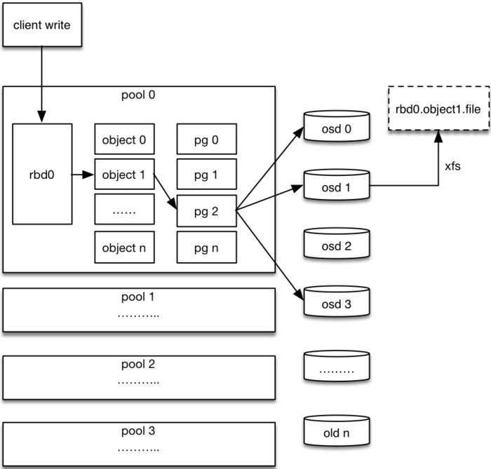pg到OSD的映射的过程算法叫做CRUSH 算法。(一个Object需要保存三个副本,也就是需要保存在三个osd上)。