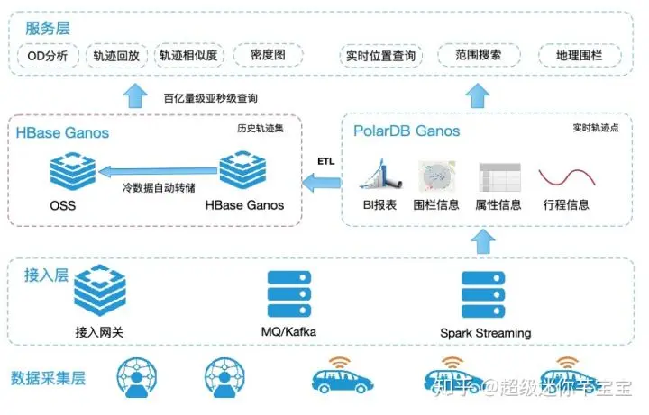 • 利用POLARDB Ganos的MOD移动对象数据库保存业务、GIS和行程轨迹现势数据,而HBase Ganos保留所有历史轨迹库;