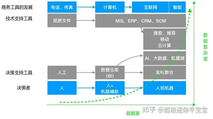 - 互联网的在线特性也将业务需求推向了实时化,随时根据当前客户行为而调整策略变得越来越常见,比如大促过程中库存管理,运营管理等(即既有中远期策略型,也有短期操作型);同时公司业务互联网化之后导致同时服务的客户剧增,有些情况人工难以完全处理,这就需要机器自动决策。比如欺诈检测和用户审核。