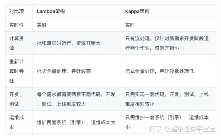 - Kappa 架构最大的问题是流式重新处理历史的吞吐能力会低于批处理,但这个可以通过增加计算资源来弥补。
