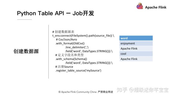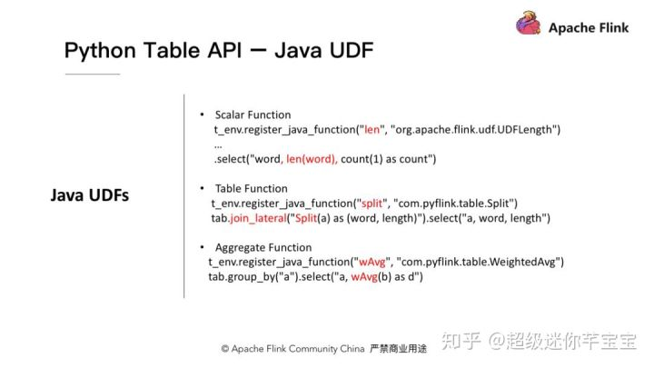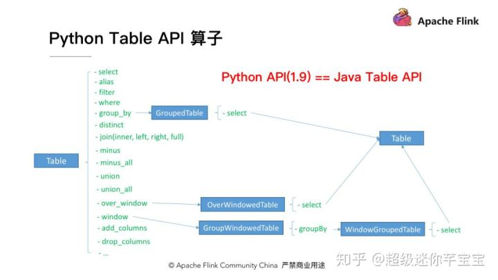 - 不需要另外创建一套新的算子,可以轻松与 Java 的 Table API 的功能保持一致;