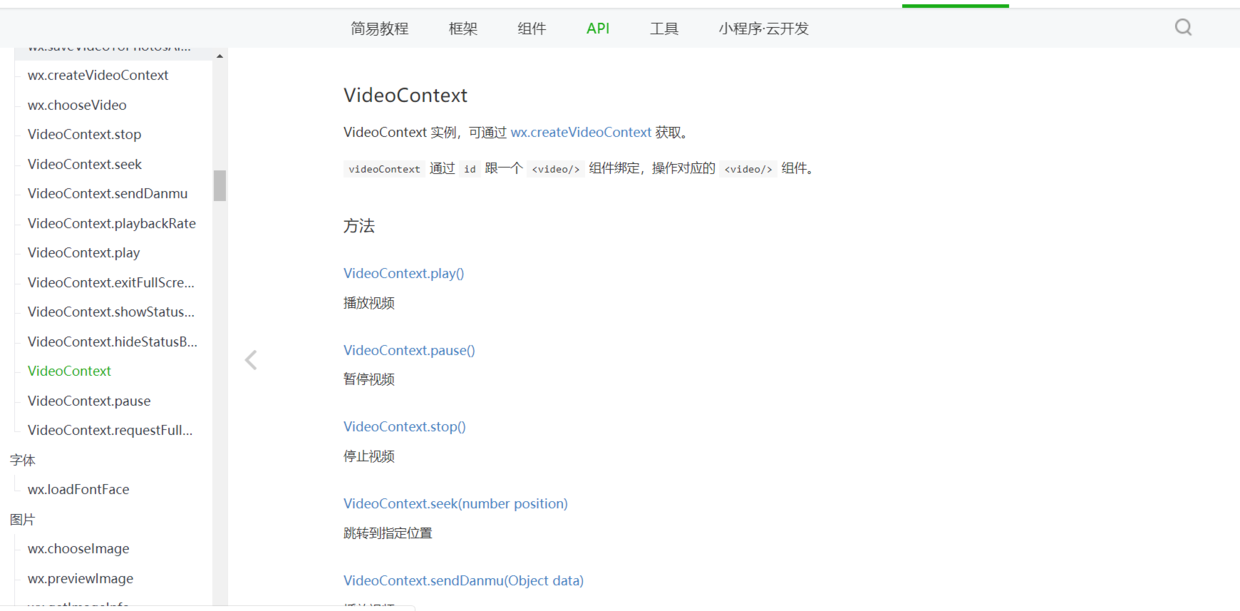 >https://developers.weixin.qq.com/miniprogram/dev/api/media/video/VideoContext.html