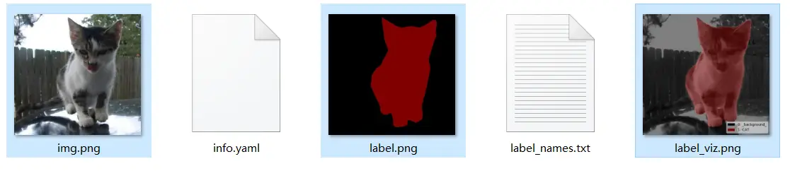 转换之后每个 json 文件会生成一个对应的文件夹,文件夹下包括了 image.png-原图,label.png-标注图像,label_viz.png-标注可视化图像: