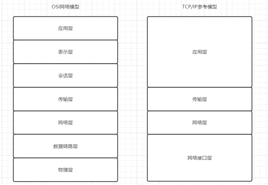 TCP/IP参考模型可以视为是OSI模型的精简版,它们由这样的对应关系:
