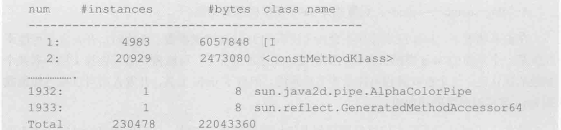 很多情况下,java应用程序不会指定所有的虚拟机的参数值,此时,开发人员可以通过该命令找到虚拟机参数的当前值。