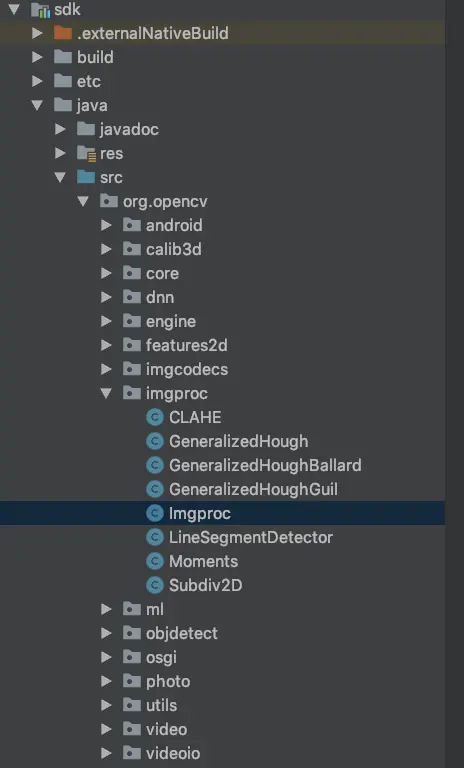 - 下载OpenCv SDK 地址,将SDK 打包成aar,集成到项目中,快速获取aar,可以直接到我打好的包里获取 Github中获取. 打aar包很简单,用Android Studio打开下载好的SDK,然后到其目录下,执行./gradlew assembleRelease 或者用侧边的辅助工具