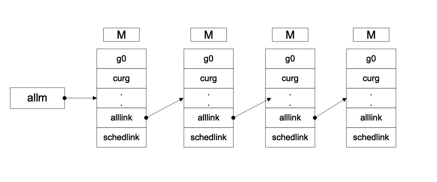 // 下一个m,通过这个字段和sched.midle 可以串成一个m的空闲链表