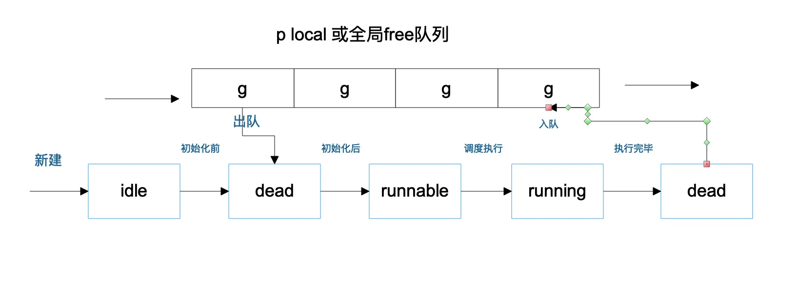 // 状态为 Gdead的g的列表,可以进行复用