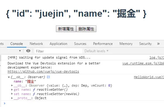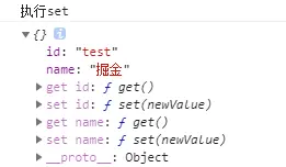 下面我们通过改变vm.name = "juejin",我们通过控制台可以看到