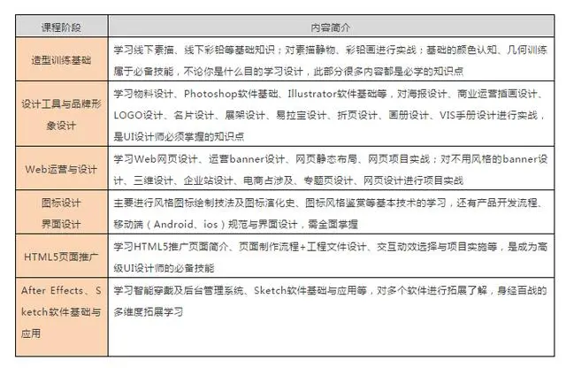 (主要掌握HTML5页面推广、After Effects软件与交互、智能穿戴与后台管理系统、Sketch软件基础与应用)