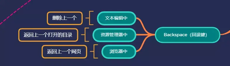 因此,除了在文本编辑中删除上一个字符,你还可以在浏览器中使用 Backspace 返回刚才的页面,以及在资源管理器当中返回上一个打开的目录。