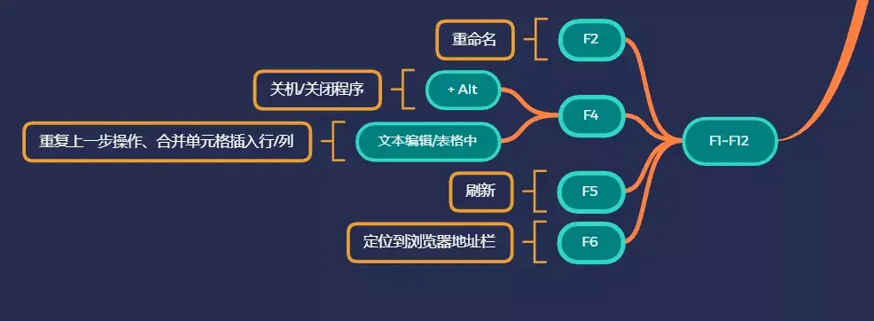 其中, F2 可以帮你快速重命名;F5 可以帮你刷新当前网页或程序;F6 可以在浏览器中帮你定位到地址栏,方便你快速输入网址,省去鼠标定位时间。