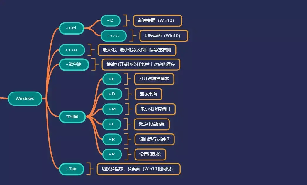 从前的电脑操作系统大多以命令为主,使用 Ctrl 组合其他键所产生的快捷方式,用于多数命令的操作。而后来随着电脑的 GUI 化,也就是图形界面化,微软便加入了 Windows 徽标键来辅助进行图形界面的一些操作。在日常的使用和迭代中,这个界限变得有些模糊。但大致如此。具体的操作不过如下图所示: