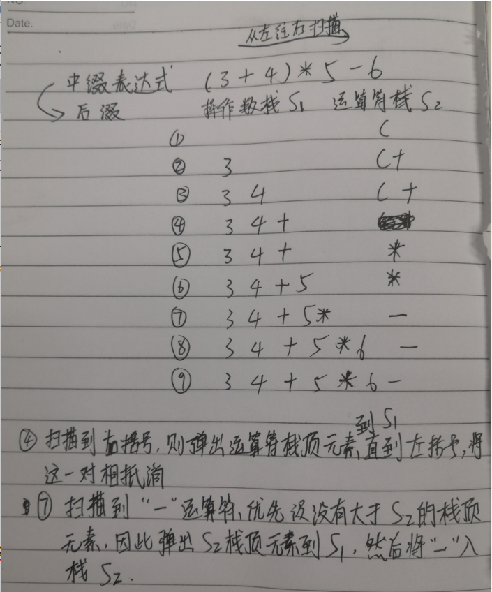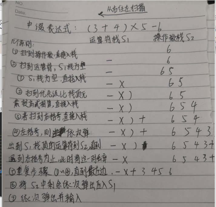 //(5-2) 如果是左括号“(”,则依次弹出S1栈顶的运算符,并压入S2,直到遇到右括号为止,此时将这一对括号丢弃;
