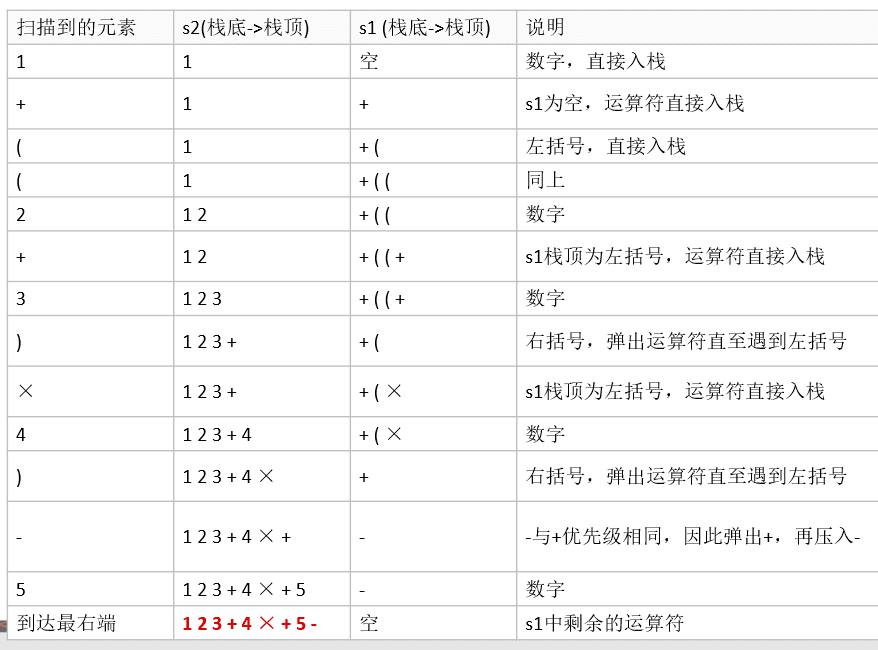 //(8) 依次弹出S2中的元素并输出,结果的逆序即为中缀表达式对应的后缀表达式(转换为前缀表达式时不用逆序)。