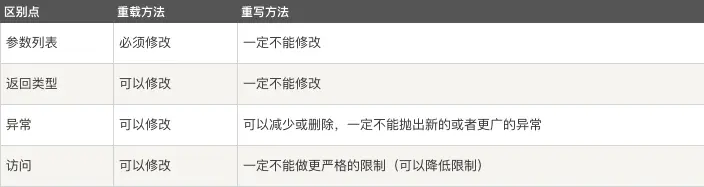 - 被重载的方法可以改变访问修饰符;