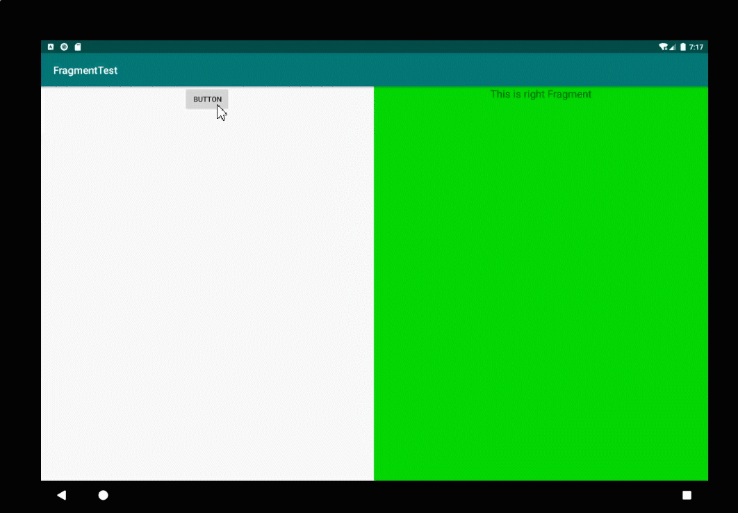 可以看到,首先我们给左侧碎片中的按钮注册了点击事件,然后调用replaceFragment()动态添加RightFragment()碎片。当点击按钮的时候,又会调用replaceFragment()方法将右侧替换成AnotherRightFragment碎片。