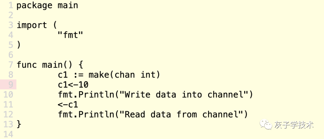 例子1: 同一个goroutine里面不能同时对channel既是读数据,又是写数据,因为channel是需要goroutine之间交互用的。