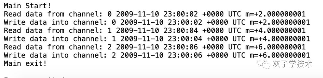 从代码可以看出,写数据的协程每隔2s才会写一次数据,而读数据的协程是有数据就读出来。