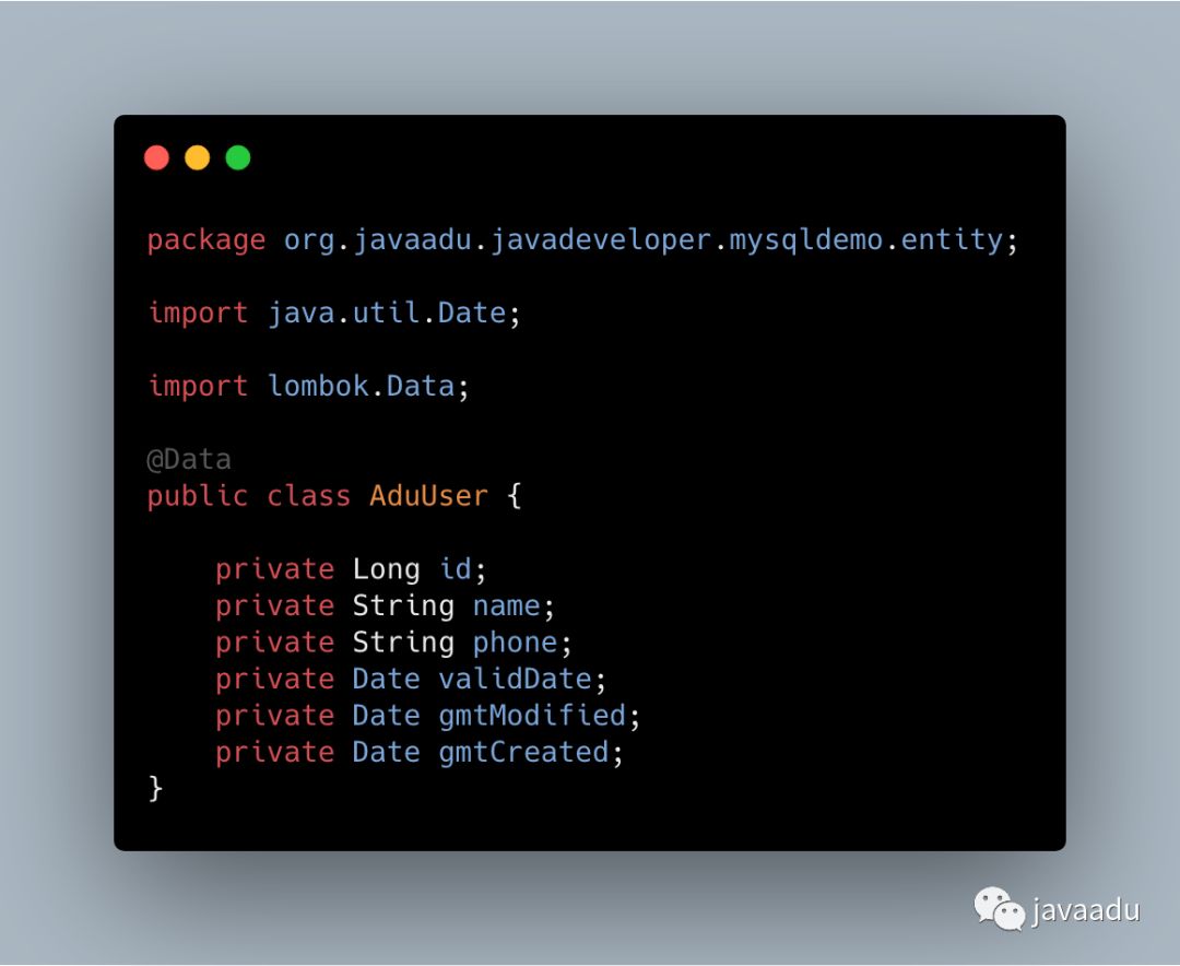 使用spirngboot + mybatis作为开发框架,定义一个用户实体,代码如下所示: